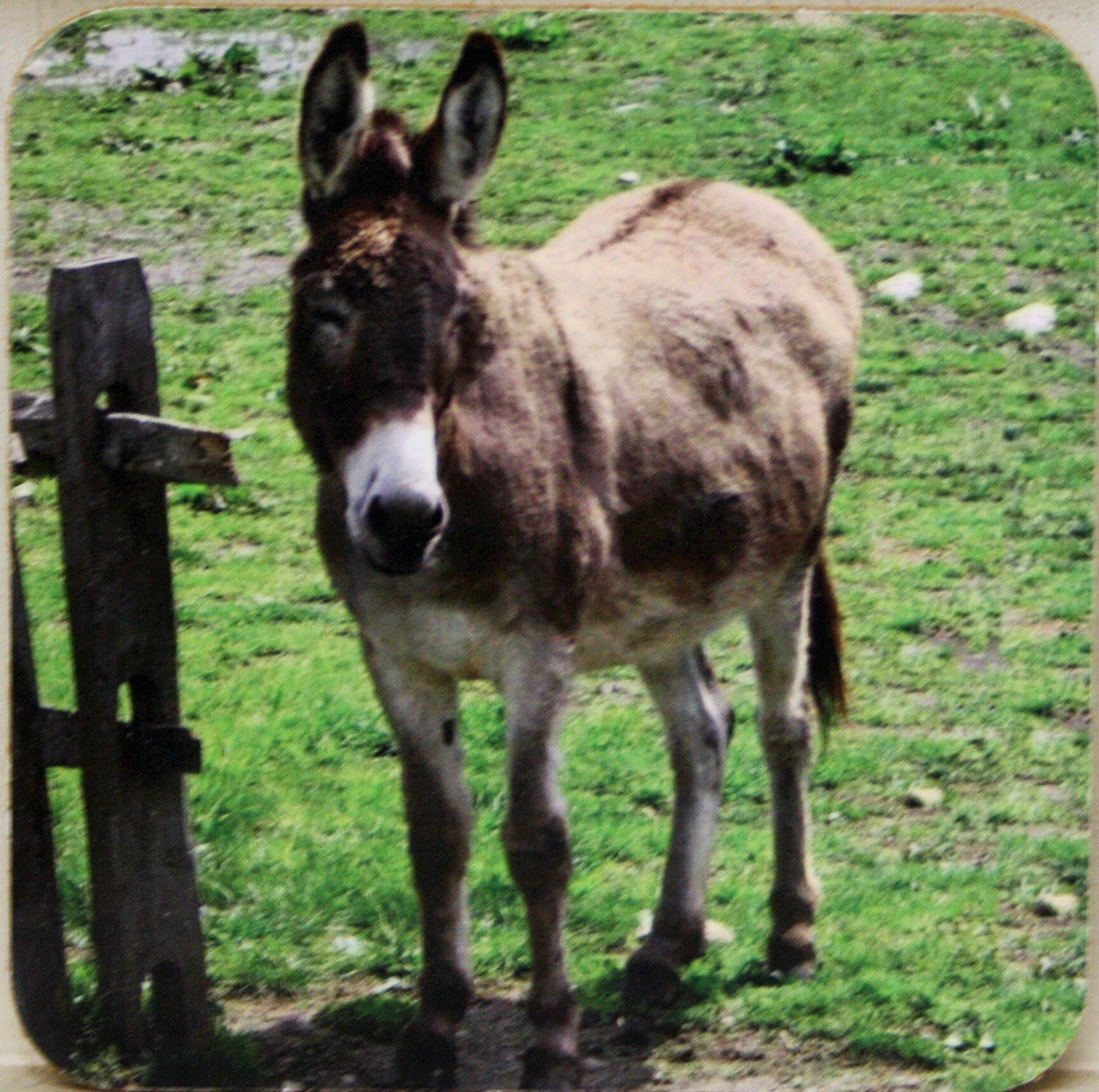 6 Verschillende afbeeldingen van ezels op een onderzetter van kurk.